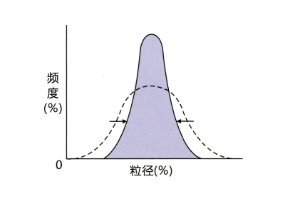 ![]() 相比傳統(tǒng)磨機,即使在相同的平均粒徑,它可以得到集中的粒度分布。 |